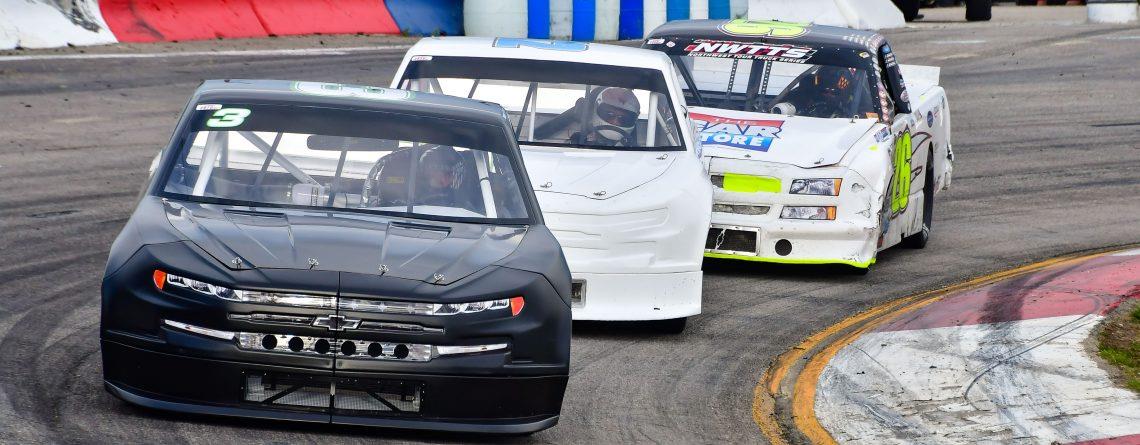 Wade set his sights on Jesser’s Wong Farms, Champion Produce tailgate, and at the race’s halfway point had the leader within striking distance. For three laps the battle raged until Jesser and Wade came together as they dove into turn three. Jesser spun, Wade was relegated to the back of the pack, and the race resumed with Quale and Latham up front on the restart.