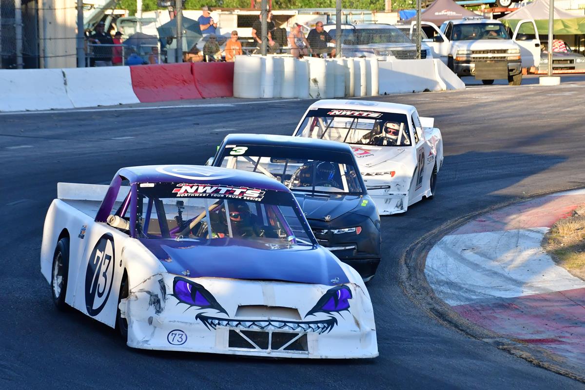 John Wong rooted his way to the lead and the win in Saturday’s first North West Tour Truck Series feature. The Eagle, Idaho driver lined up eighth for the second feature, and looked to sweep the weekend when the green flag waved.
